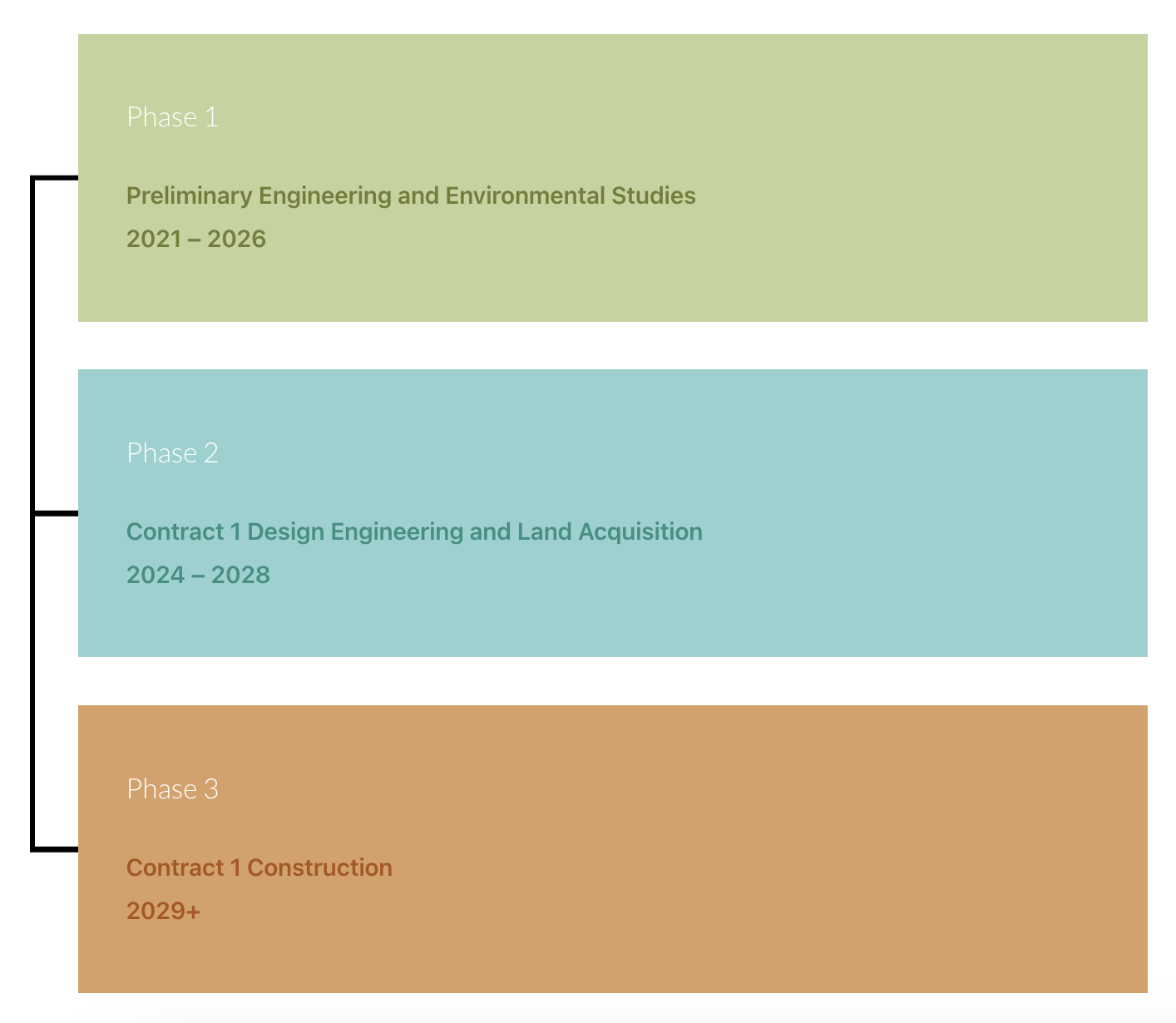 Engineering is underway and is funded through a combination of various Lake County and Illinois funding sources. LCDOT has received a commitment for $12 million in Illinois Commerce Commission (ICC) funding for construction. At this time, construction costs are not yet funded. LCDOT anticipates applying for federal grants and Surface Transportation Program (STP) funding to support future phases of engineering and construction.